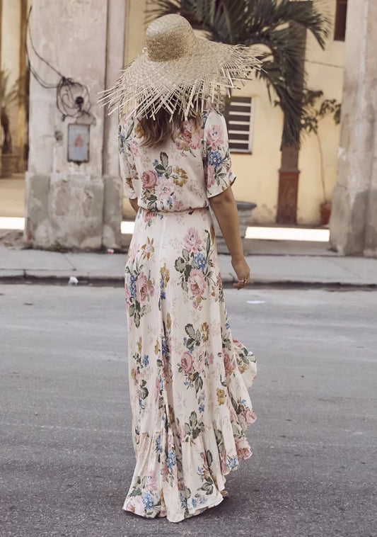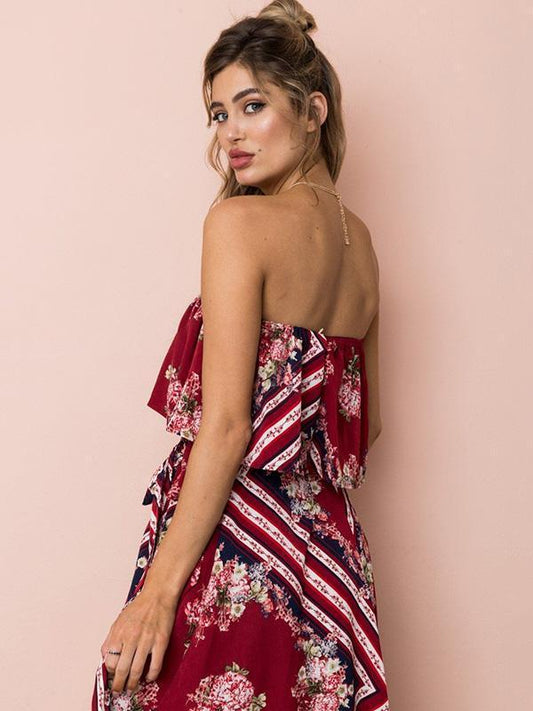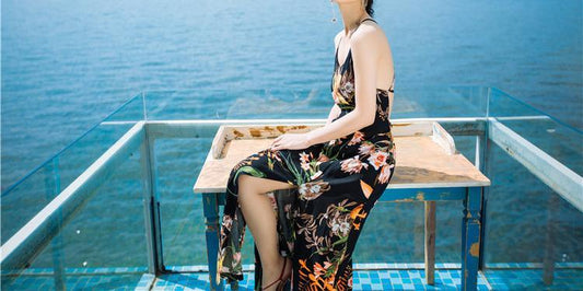 Sexy Floral Print Back Cross Split Beach Bohemia Maxi Dress