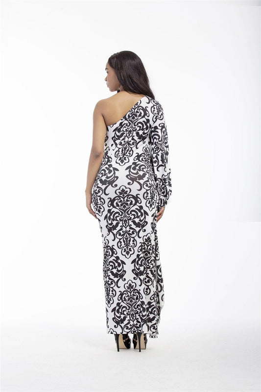 Sexy Printed Oblique Shoulder Boho Beach Maxi Long Dress