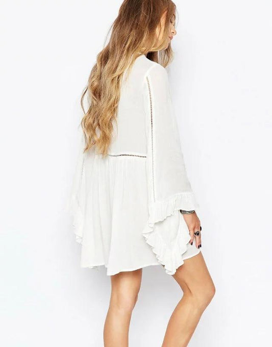 Mesh See Through Short Sleeve Deep V Neck Bikini Beach Dress
