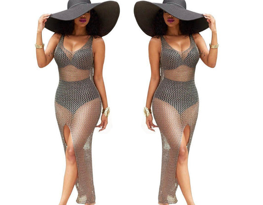 Sexy Hollow Sleeveless Split Swimwear Bikini Beach Cover Up