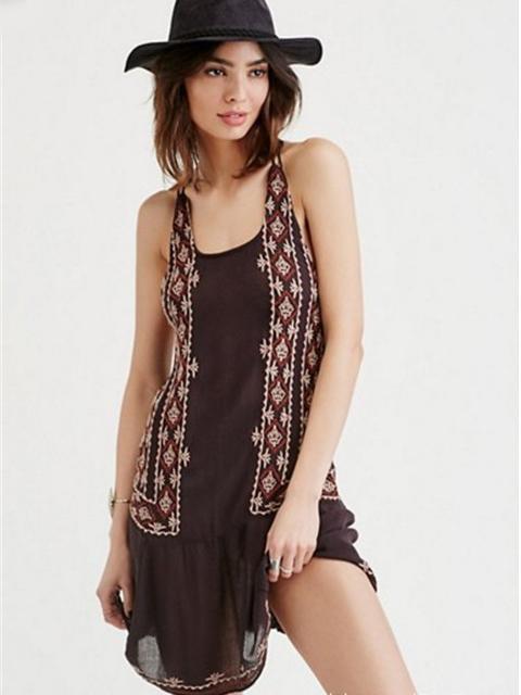 2018 new arrival Bohemian sleeveless embroidered flower sexy strap halter dress