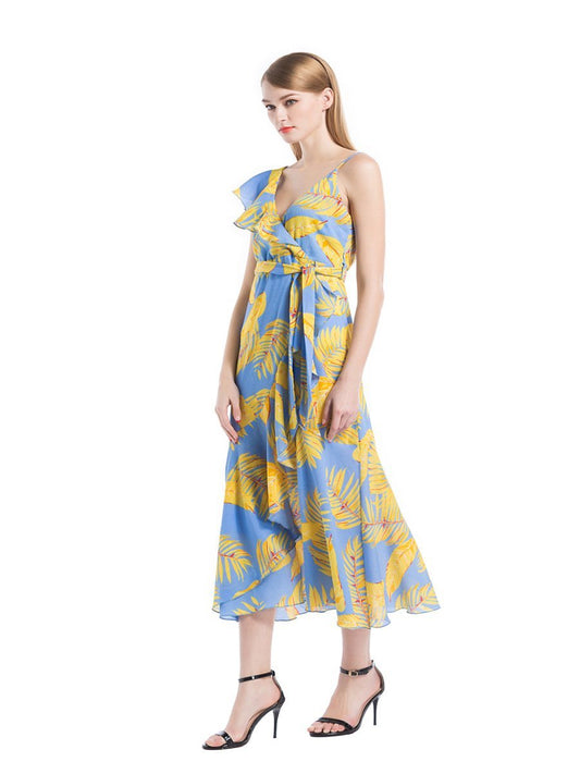 2018 Printed Leaf Sexy Maxi Dress