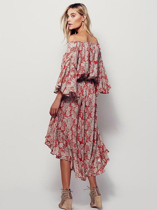 Pretty Bohemia Floral Off-shoulder Falbala Maxi Dress