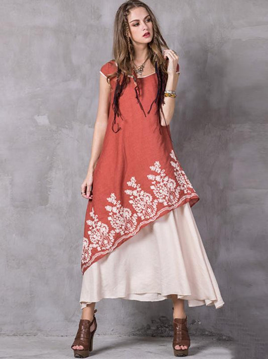 Asymmetric Embroidered Maxi Dress