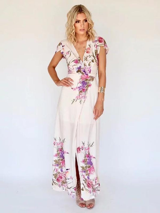 Deep V-neck Floral Split-side Maxi Dress