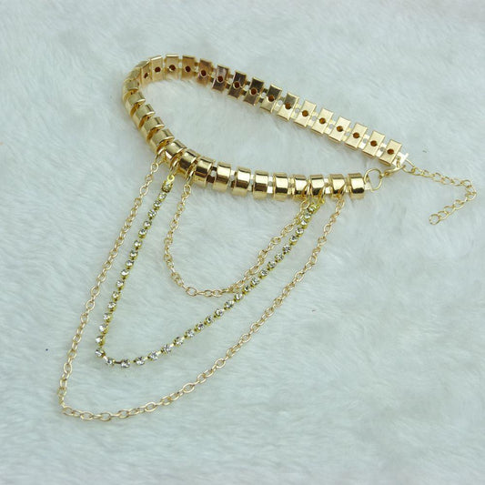 Exaggerated personality alloy chain anklets with pearl tassel diamonds and even finger-decorated