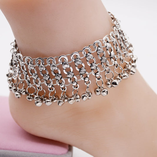 Vintage ethnic style exaggerated full of water drops gem pearl tassel anklets