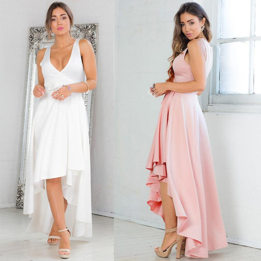 2 Colors Solid color irregular sexy deep V-three-dimensional cut banquet evening dress