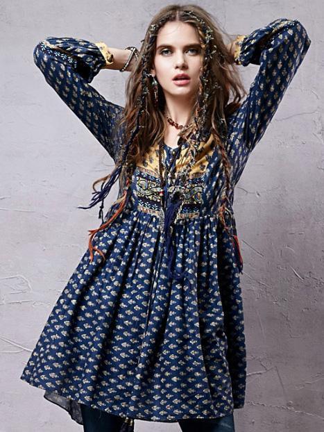 Split-joint Printed Shirt Mini Bohemia Dress