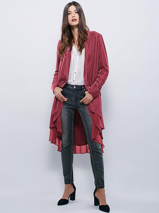 Velvet Chiffon Falbala Cardigan Outwear Tops