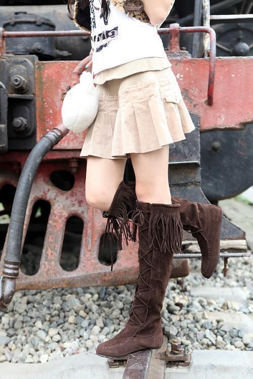 Fringed boots 32-43 large size women s Boots high-heeled waterproof multi-layer tassel high boots