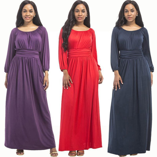 Long-sleeved crew neck plus size dress sexy plus size dress