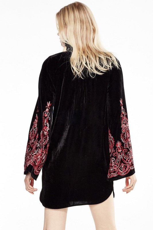 Velvet speaker sleeves exquisite embroidery black lace dress