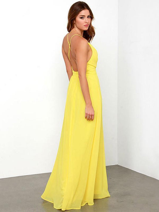 Simple Deep V-neck Backless Sleeveless Bohemian Maxi Dress