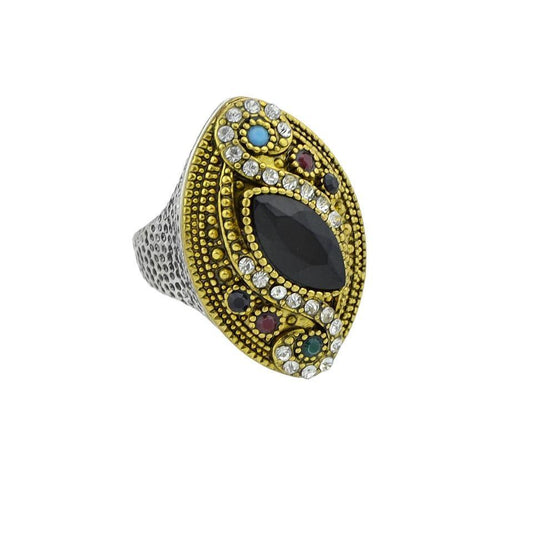 Jewelry Gold color rings with black blue red acrylic and white rhinestone geometric shape wedding rings
