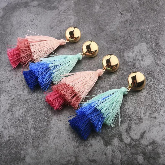 Three-color gradient tassel earrings handcrafted wrap jewelry for party