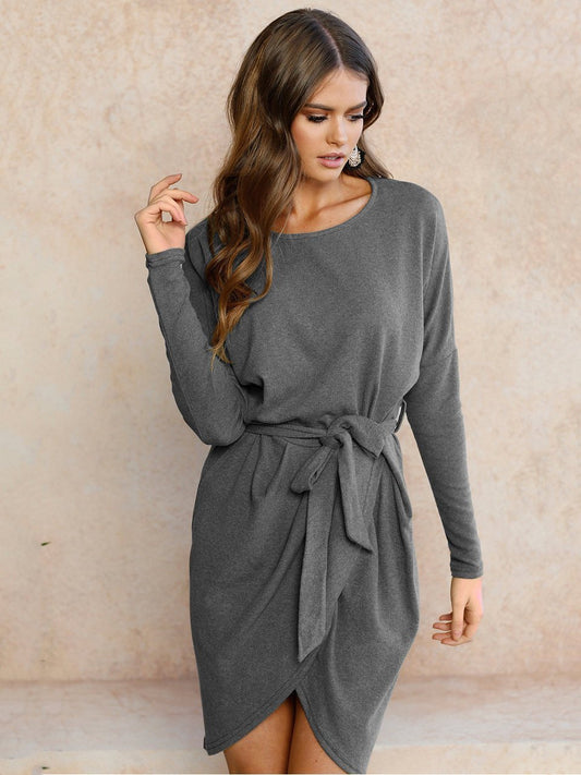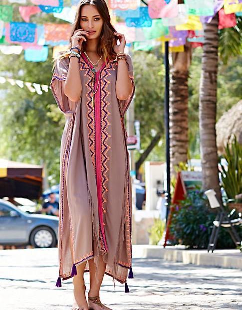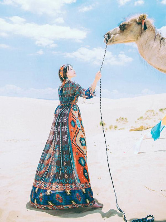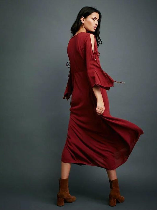 Long sleeved bohemian solid color beach holiday elegant long dress