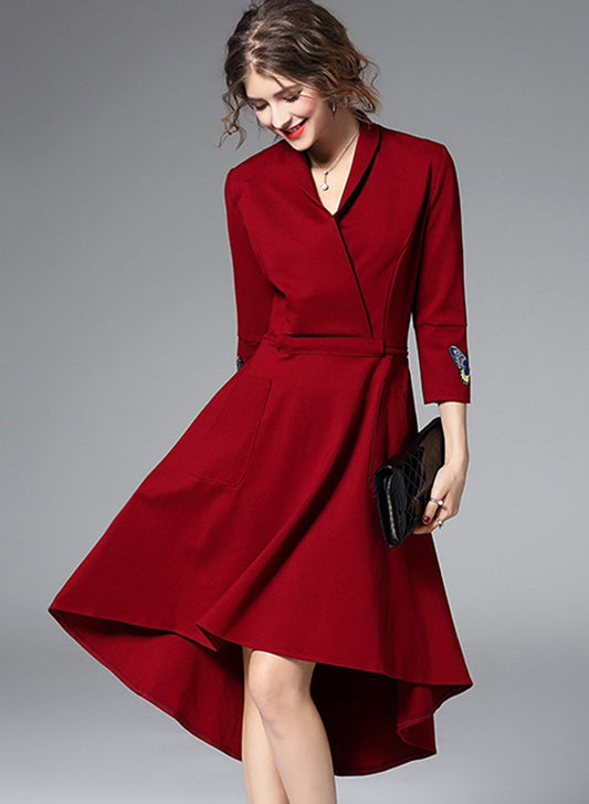 Women s Elegant V Neck 3/4 Sleeve High Low Party Dress