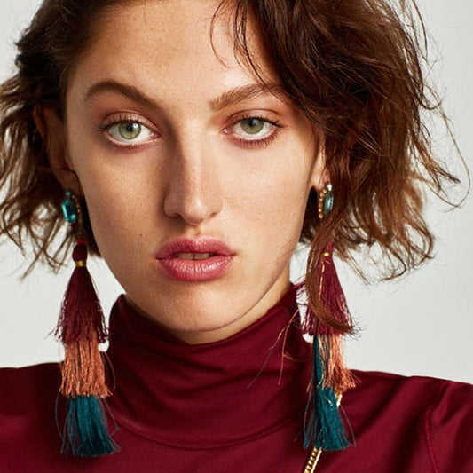 Handmade long tassel colorful bohemia style statement fashion party