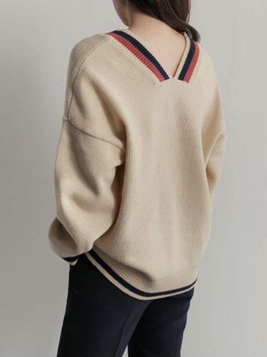 Casual Stripe Patchwork Long Sleeve V-neck Women Sweaters