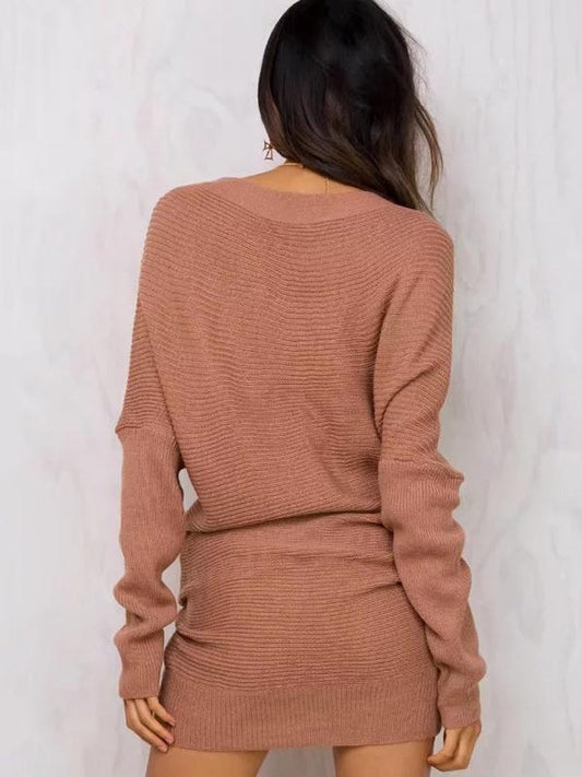 Women s Polyester Off Shoulder Batwing Sleeve Knitting Sweater