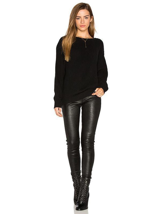 Knitting Backless Round-neck Long Sleeves Sweater Tops