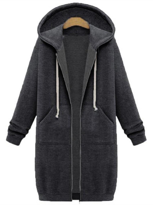 Casual Women Long Sleeve Zipper Hooded Pocket Coats