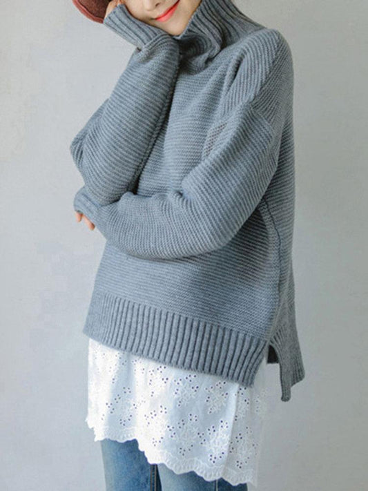 Casual Loose Solid Color Turtleneck Women Sweaters