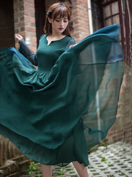 Vintage Solid Color Midi Dress