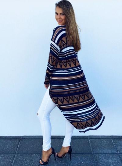 Women s Geometric Print Long Sleeve Cardigan Coat