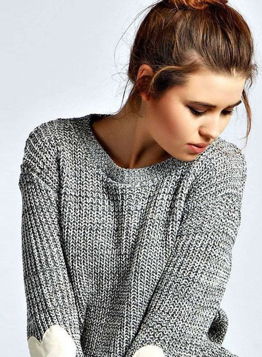 Women s Long Sleeve Beautiful Heathered Heart Patch Pullover Knit Sweater