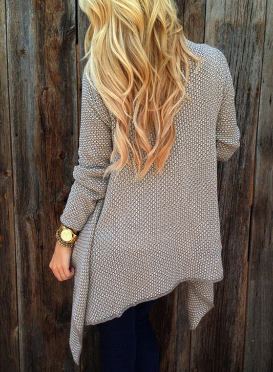 Women s Long Sleeve Draped Open Front Asymmetrical Knitted Cardigan