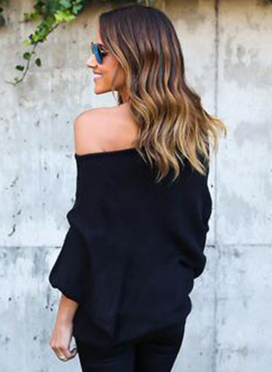 Casual Print Off-shoulder Long Bat Sleeve Women Sweaters