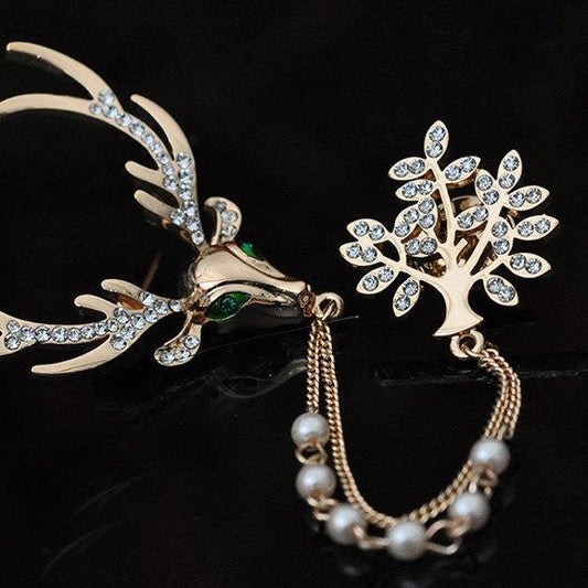 Luxury Unisex Brooch Crystal Deer Tree Artificial Pearl Christmas Brooches