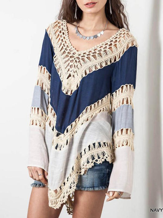 Special Long Sleeve V Neck Hollow T-Shirt Tops