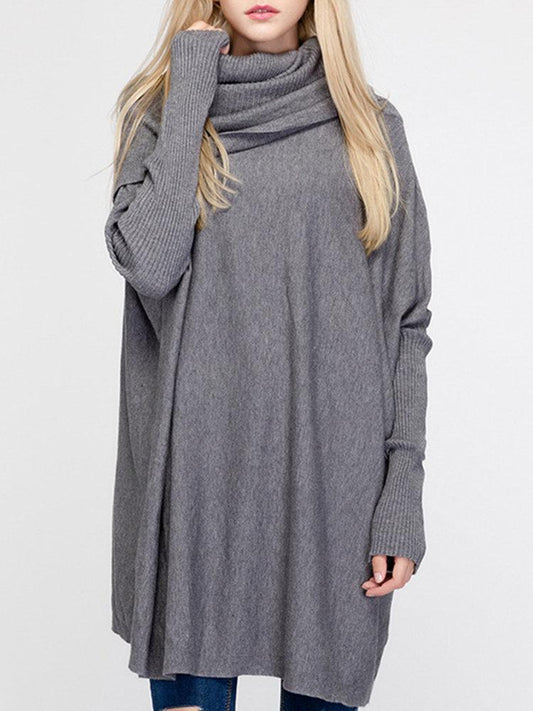 Pure Color Turtleneck Long Sleeve Loose Sweaters For Women