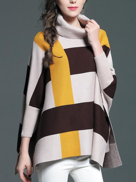 Casual Loose Plaid Turtleneck Women Sweaters