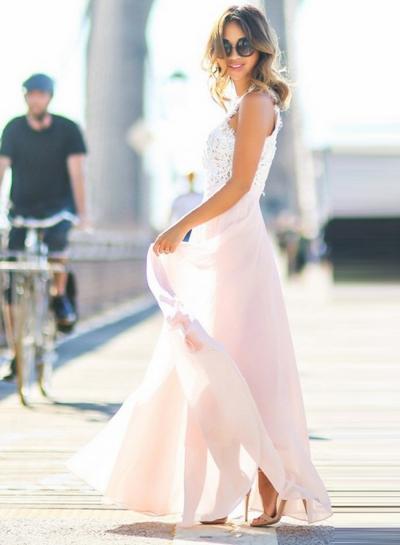 Elegant Sleeveless Lace Chiffon Evening Party Dress