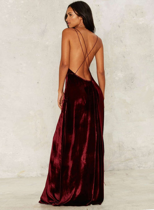 Women s Loose Sleeveless V Neck Backless Velvet Prom Evening Dress