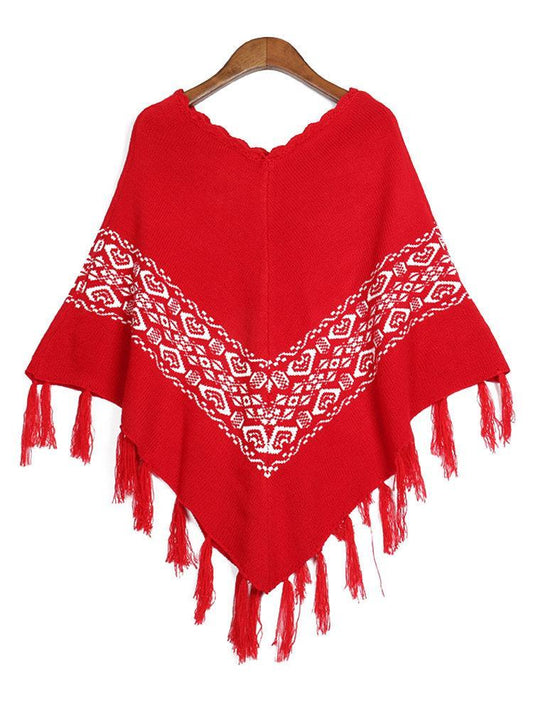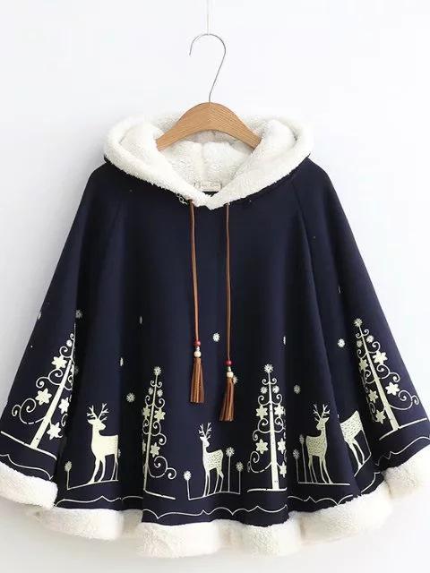 Xmas Women loose cloak type tassel lace up hoodies jackets bohemian Christmas print cape coat 2017 new