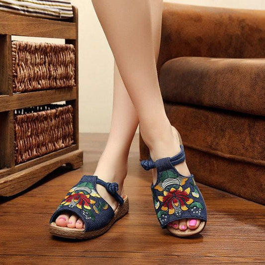 Embroidery Pattern National Wind Hollow Out Slip On Flat Sandals