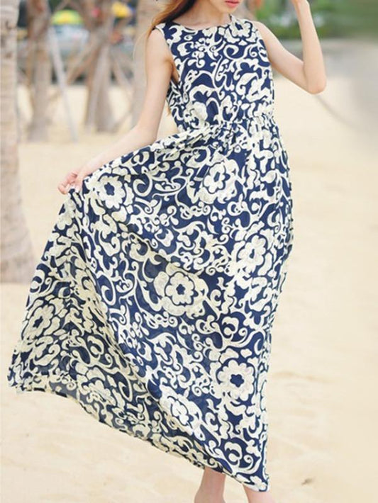 Fashion Bohemia Floral Thick Straps Sleeveless Maxi Dress