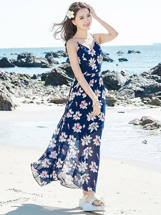 Spaghetti Neckline Floral Maxi Bohemia Dress