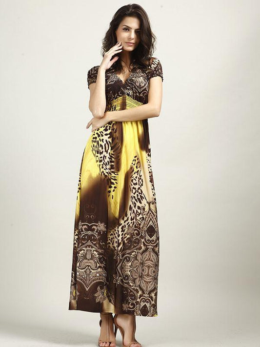 Pretty Bohemia Floral Short Sleeve V Neck Maxi Dress