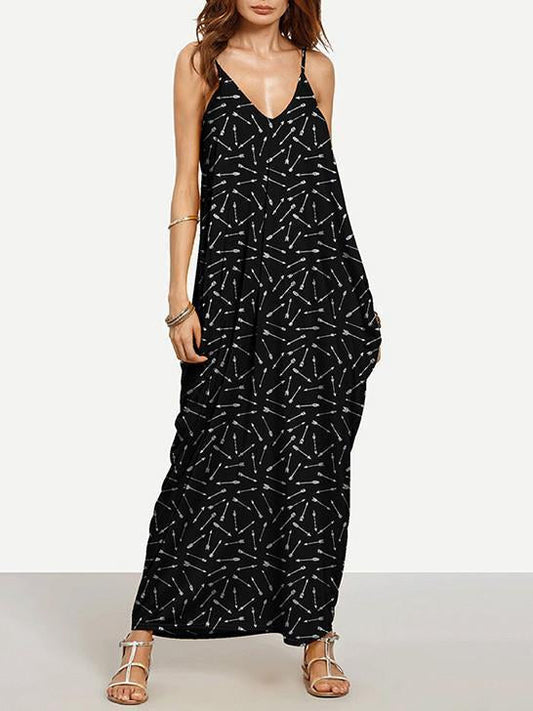 Cool Black Bohemia Spaghetti Straps V Neck Maxi Dress