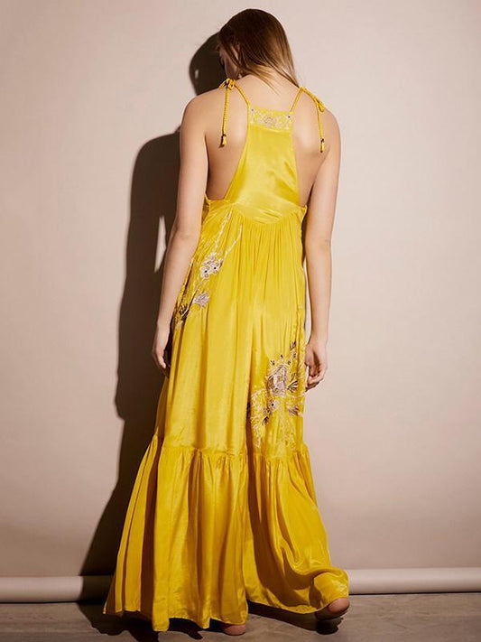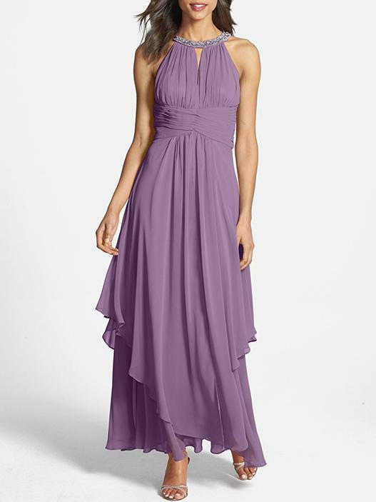 Chiffon Halterneck Beaded Sleeveless Maxi Dress