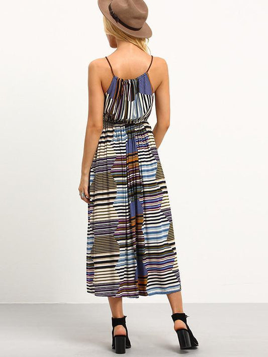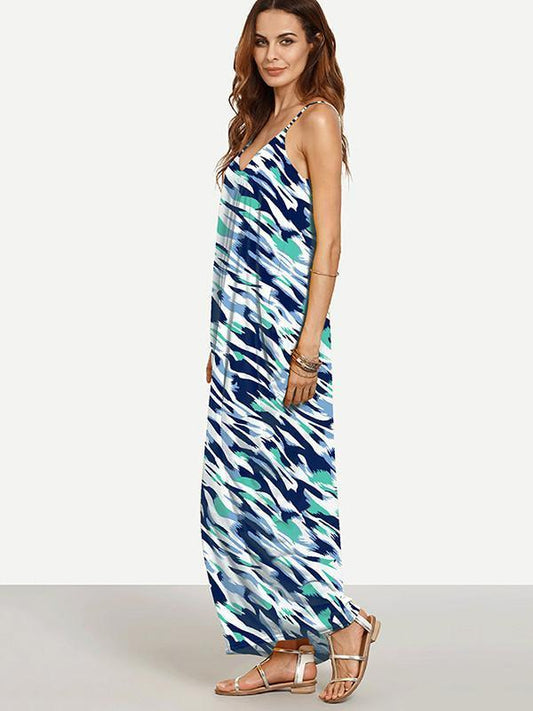 Unique Bohemia Spaghetti Straps V Neck Maxi Dress