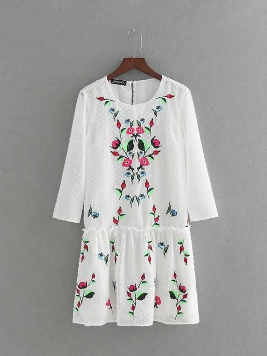 Popular Fashion Inwrought 3/4 Sleeve Round Neck Mini Dress