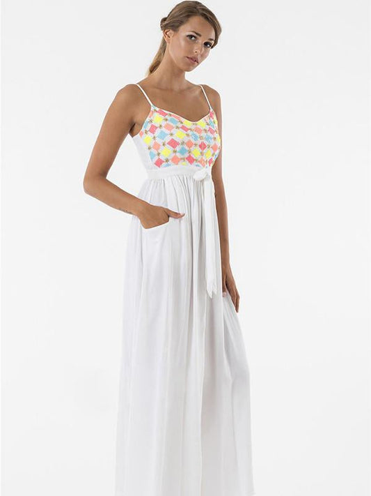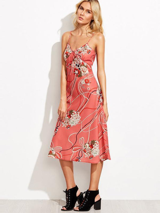 Pretty Sexy Straps V Neck Waisted Lace-Up Beach Vacation Maxi Dress