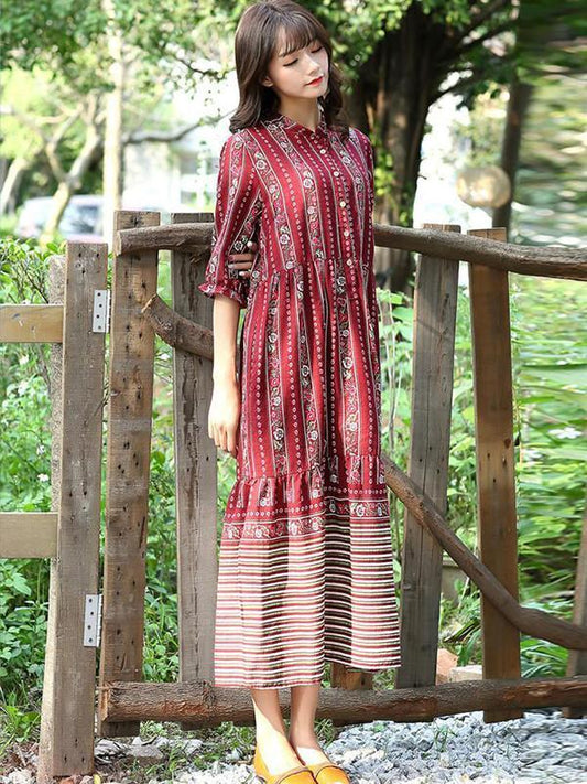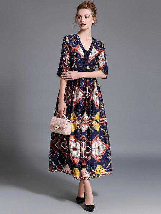 Pretty Bohemia Printed Half Sleeve V Neck Maxi Dress